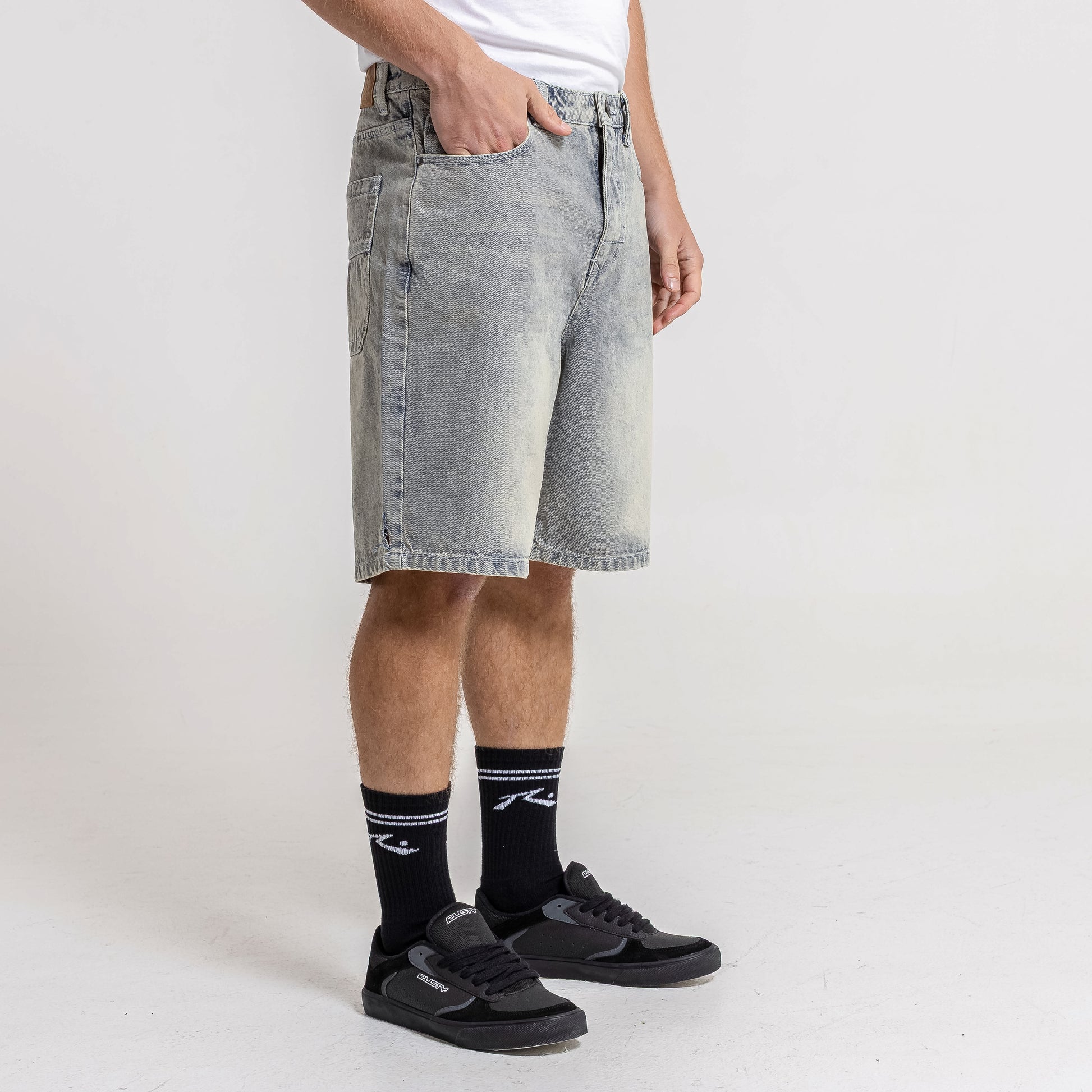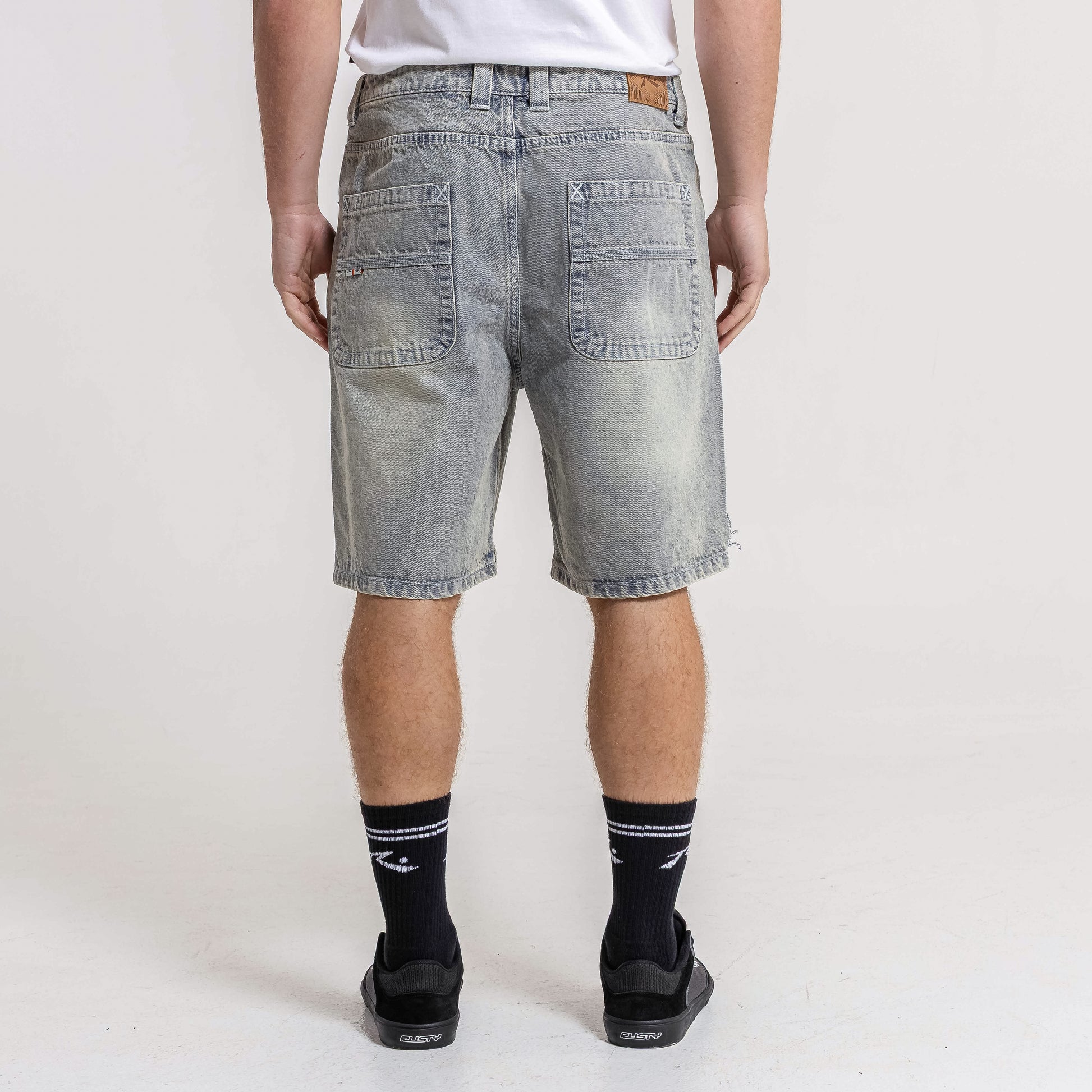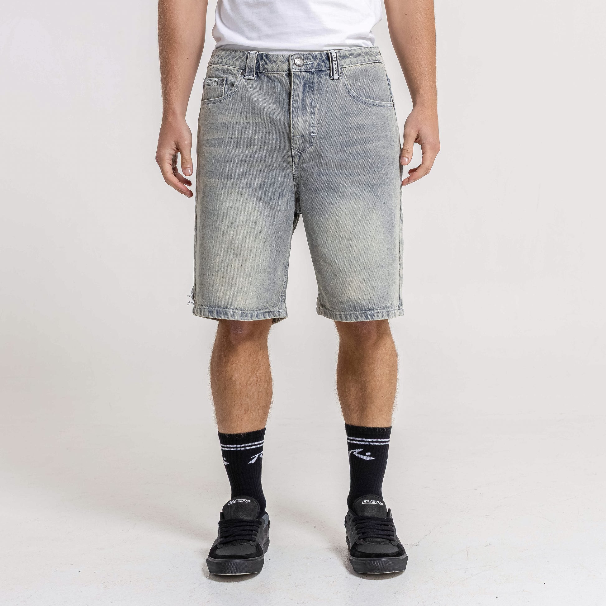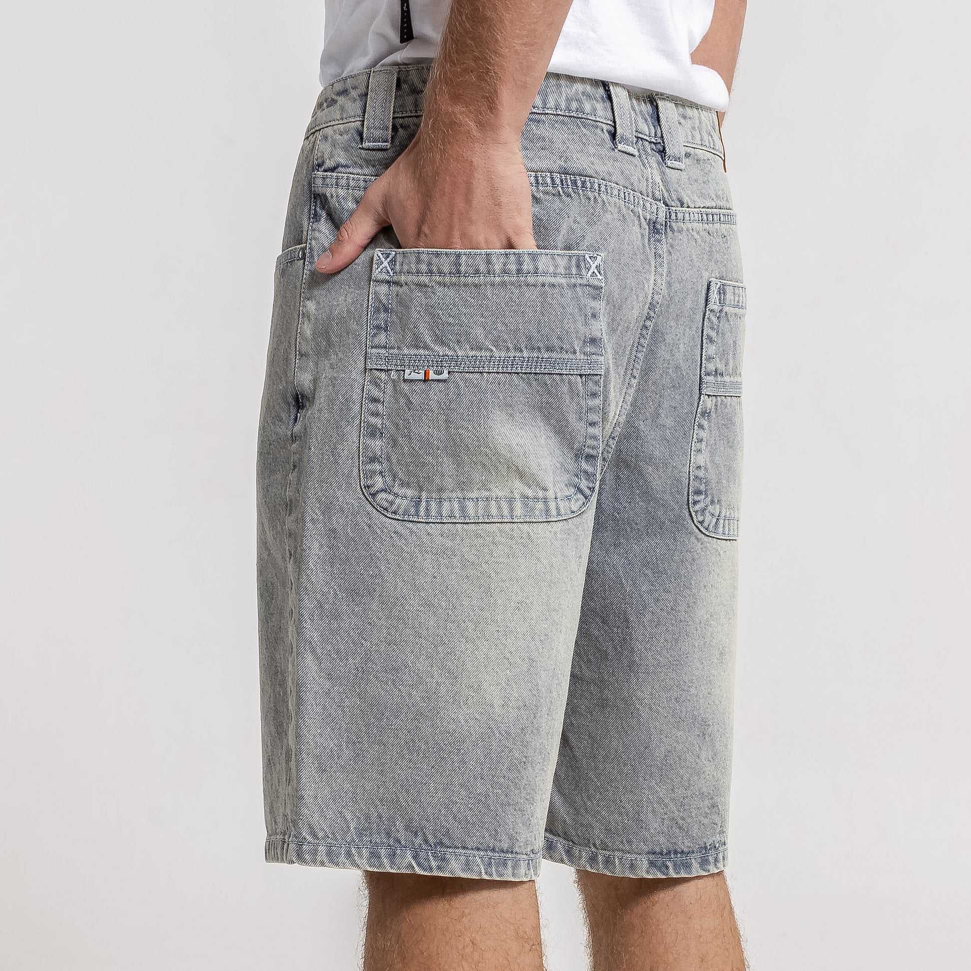Detalles Bolsillos traseros oversize. Lavado con localizado y matizado. Botón cobre italiano.