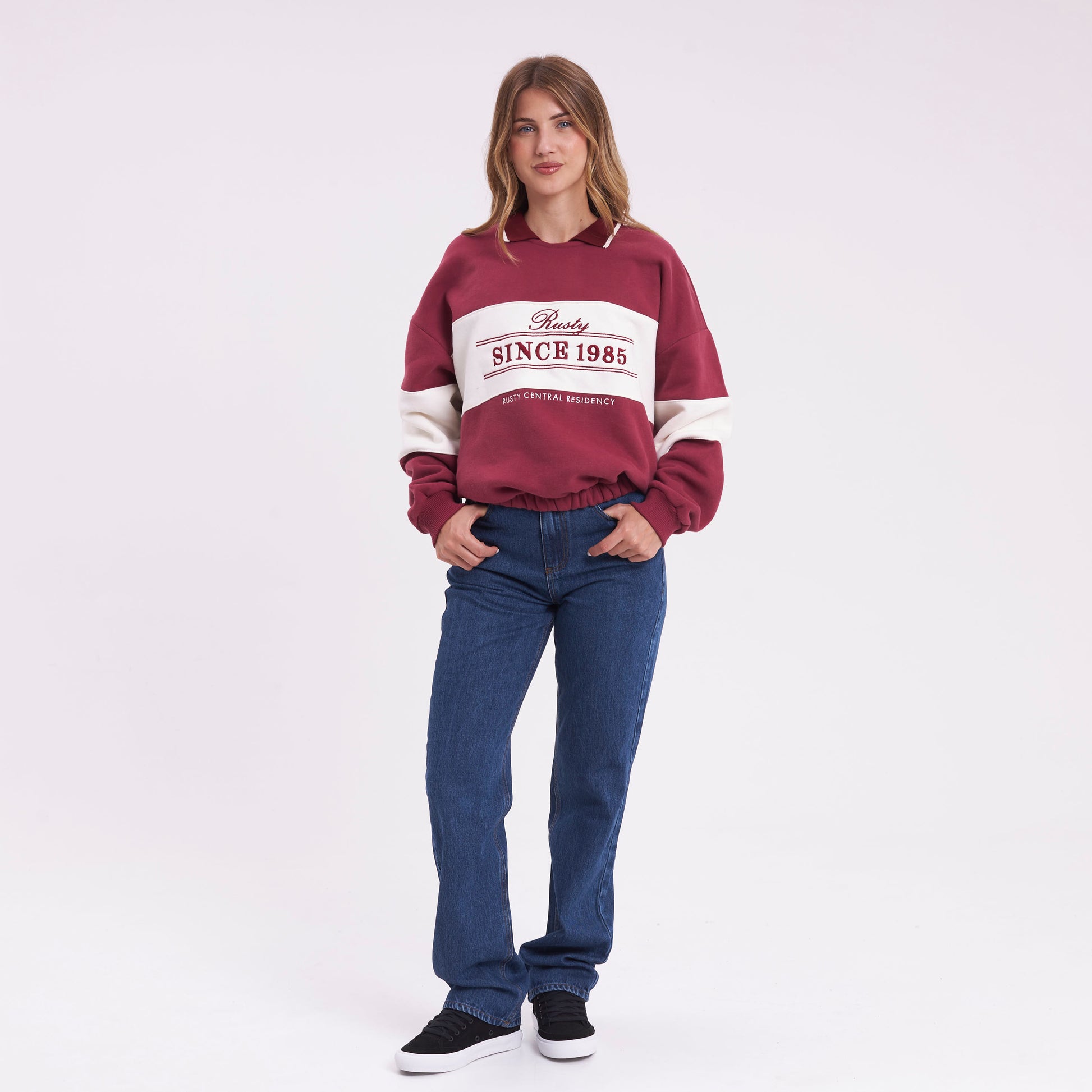 Un buzo que no es el buzo de siempre. El cuello polo tejido le suma un toque más armado sin perder la onda relajada, y el recorte central a contratono en el frente y las mangas le da ese detalle que se nota. La frisa esmerilada en algodón puro se siente suave contra la piel, con un abrigo que no pesa ni abulta. El calce relaxed te da libertad de movimiento real — cómodo para bancar una tarde entera afuera o tirado en casa. Combinalo con un jean o un jogger y listo.