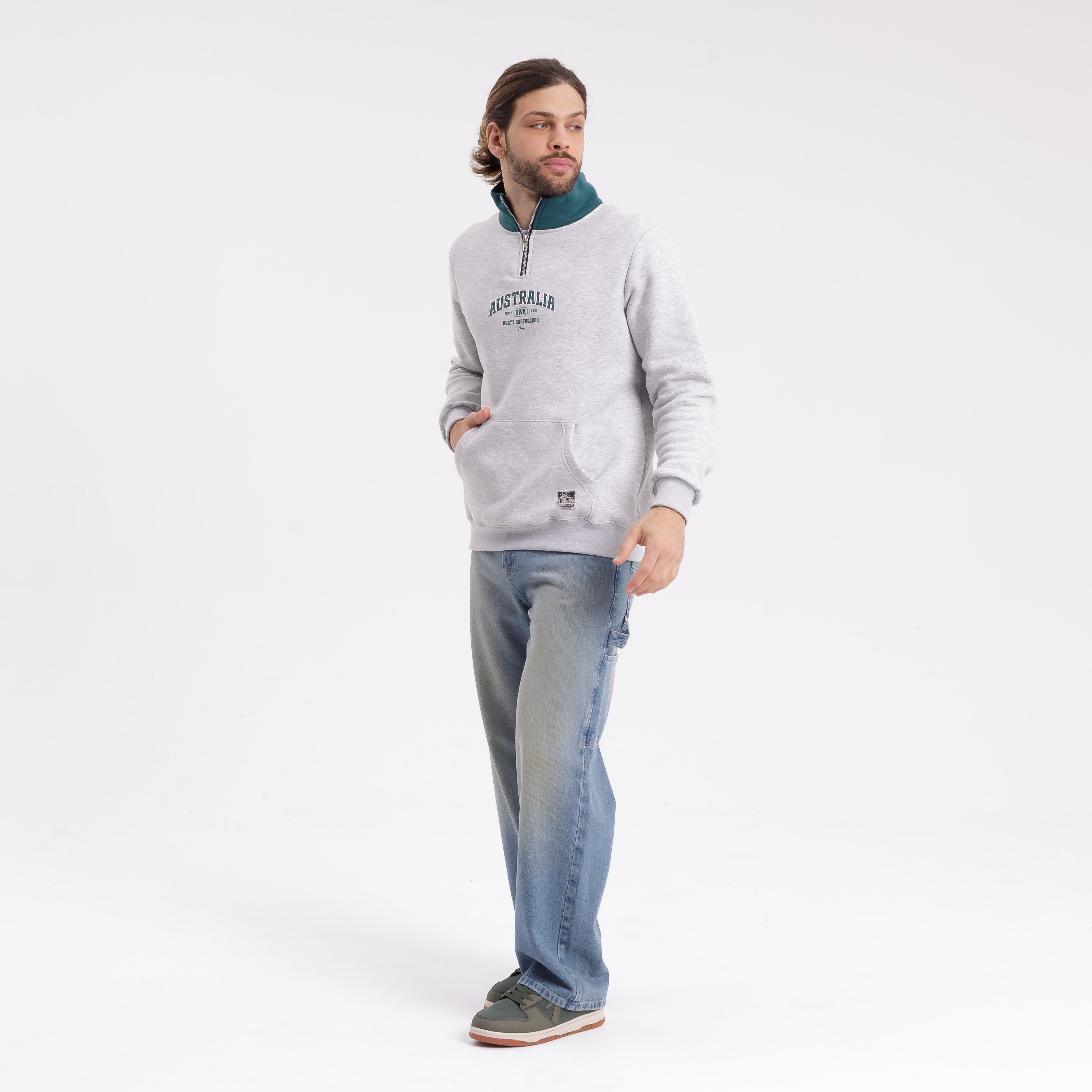 Un buzo que resuelve esas mañanas donde no sabés si va a refrescar o no. La frisa invisible te da abrigo sin que parezca que llevás tres capas encima, y el cierre al cuarto te deja regular la ventilación sin sacarte nada. El calce standard mantiene una silueta limpia, sin sobrar ni ajustar. El cuello alto protege del viento cuando salís temprano, y el blanco jaspeado combina fácil con joggers, jeans o una bermuda cargo. Lo ponés con zapatillas y ya estás.