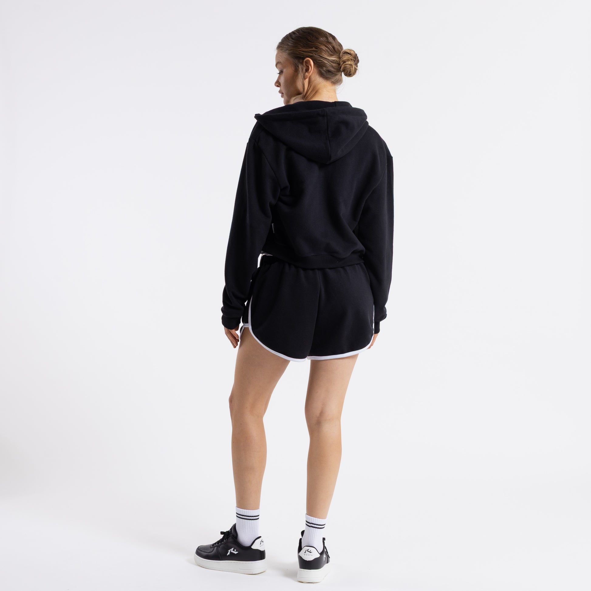 Detalles: Campera canguro corta, entallada, con capucha y cierre metálico delantero. Logo estampado y bordado.