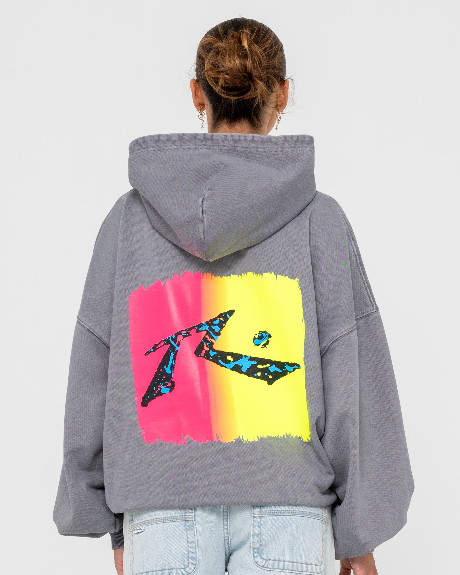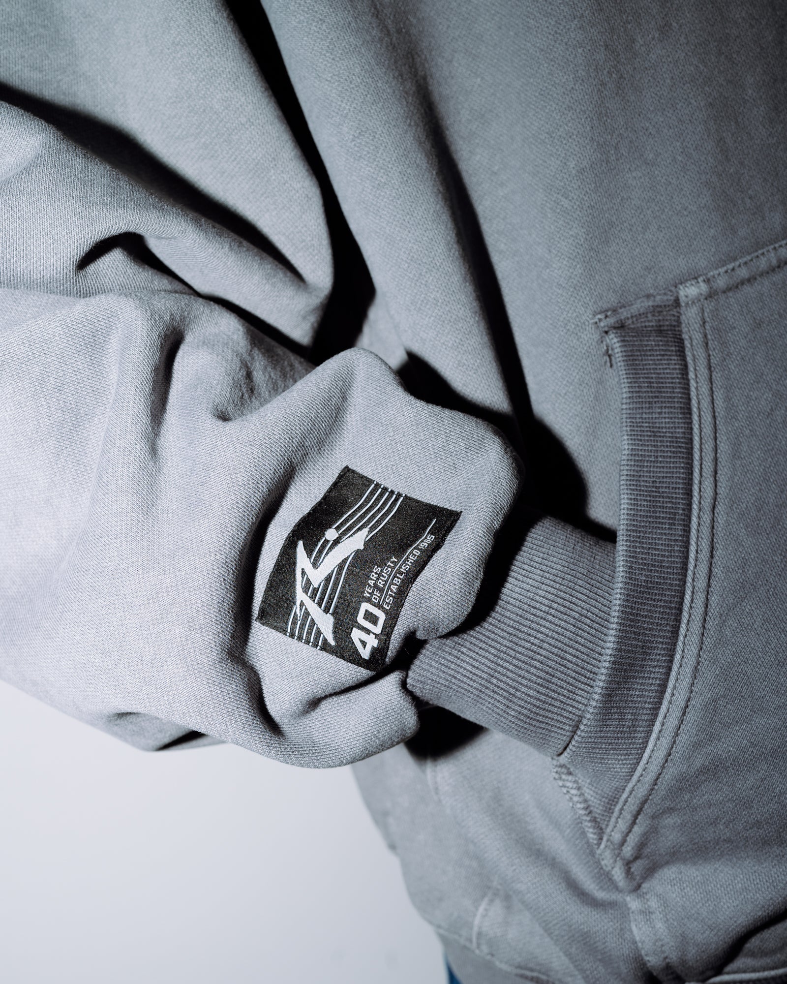 Detalles: Estampa frente y espalda. Etiqueta tejida aniversario. Prenda teñida, pre wash