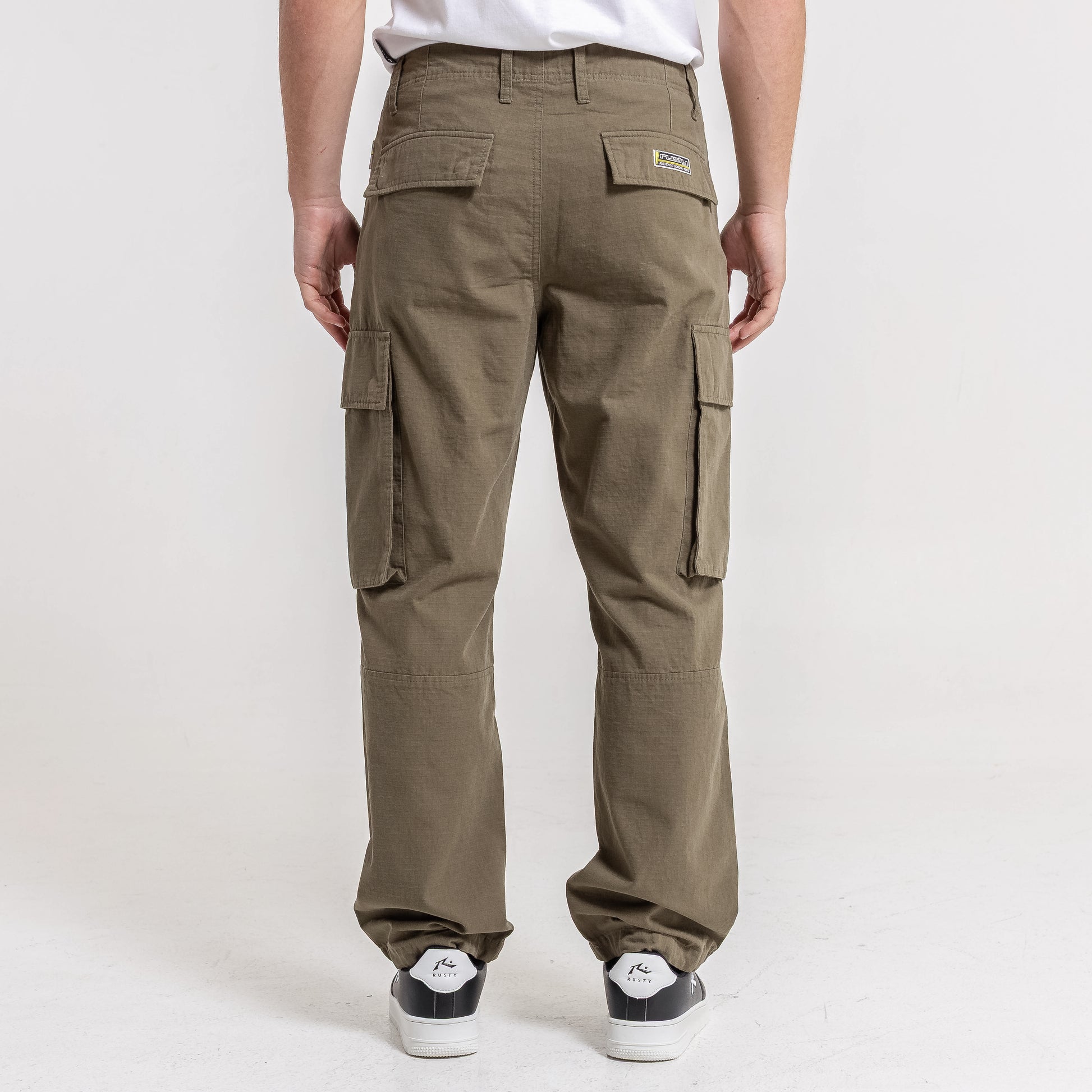 Detalles Bolsillos cargo laterales. Bolsillos traseros con tapa. Pinza de confort en rodillas. Cordón de ajuste en botamanga.
