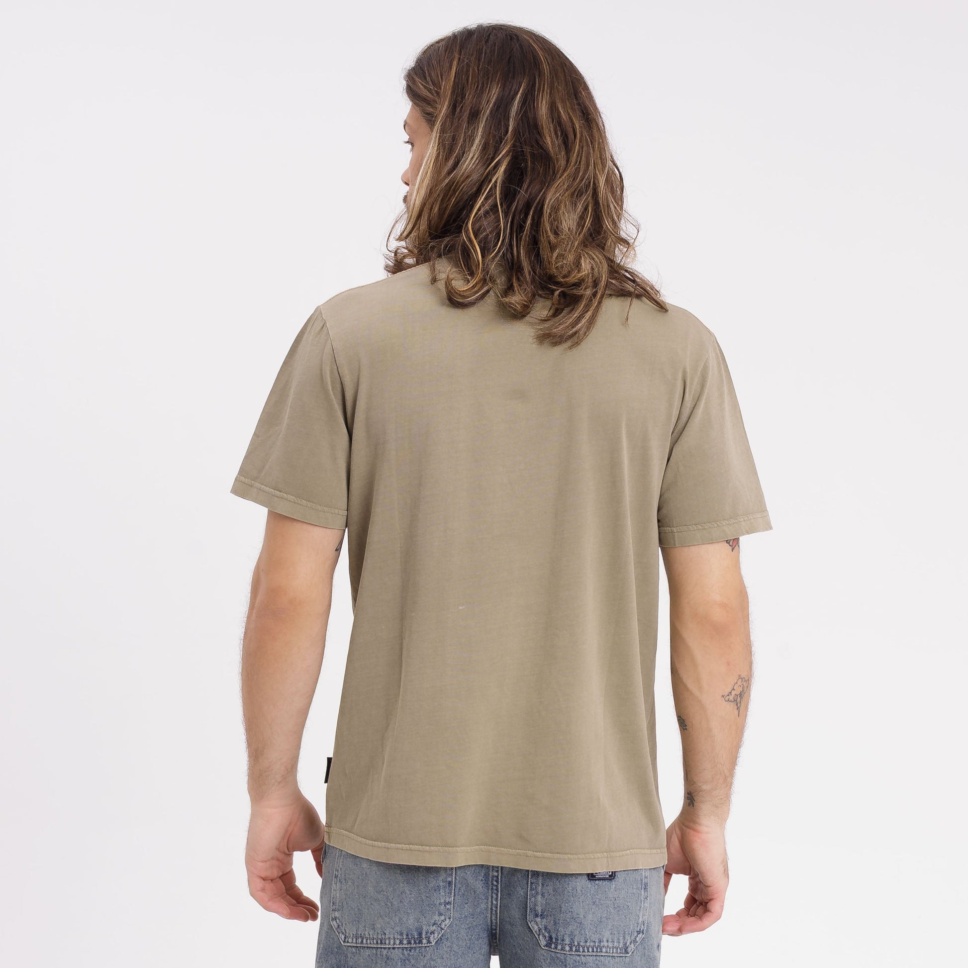 Una remera que ya viene con ese aspecto vivido desde el primer uso. El teñido en prenda le da un color deslavado natural — ese tono cornstalk arena que no grita pero se nota. El jersey de algodón peinado es liviano, fresco y suave contra la piel, así que bancás sin drama una tarde entera al sol o una salida improvisada. El calce standard te queda relajado sin perder forma, fácil de llevar con una bermuda de gabardina o unos jeans y zapatillas. El bordado en el frente suma detalle sin exagerar.