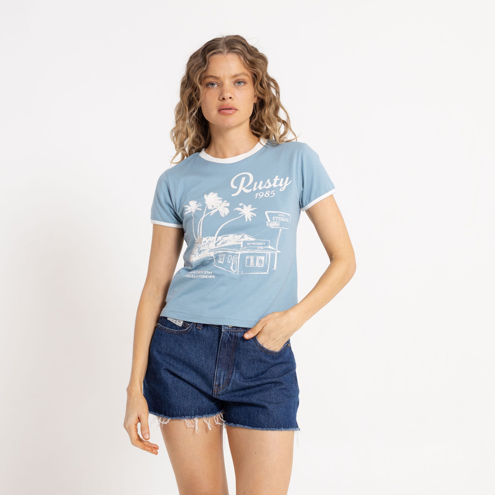 Detalles: Remera manga corta, con cuello y puños a contratono, estilo ringer. Estampa en delantero. Grifa de marca.