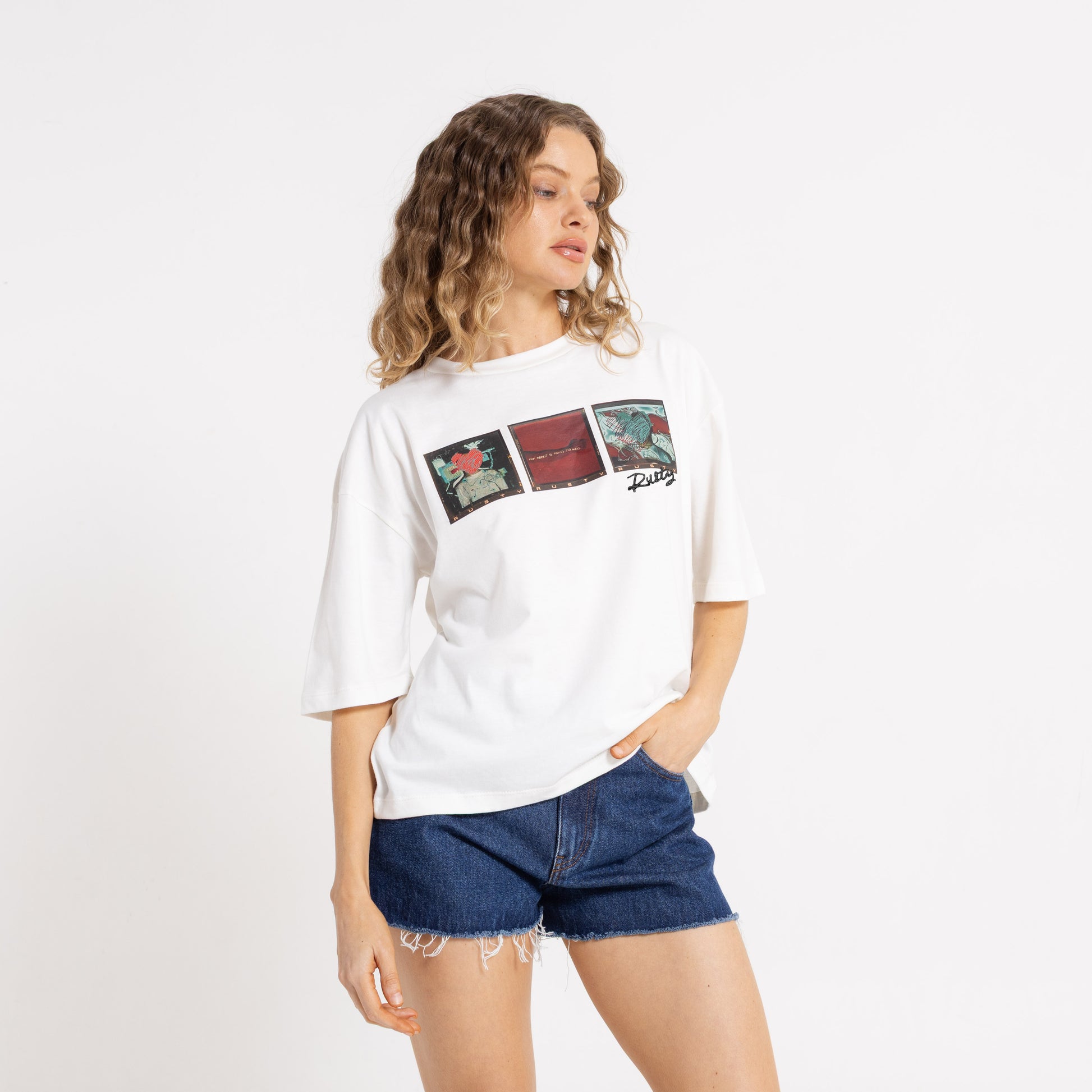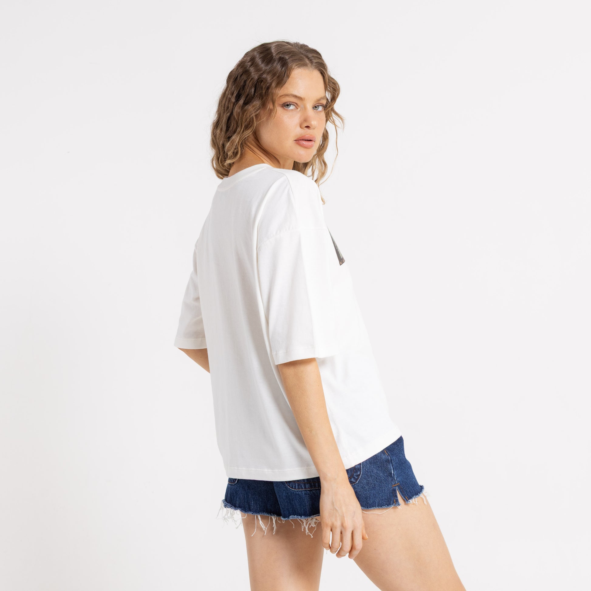 Detalles: Remera corte relajado, manga corta con cuello de ribb, estampa central. Grifa de marca.