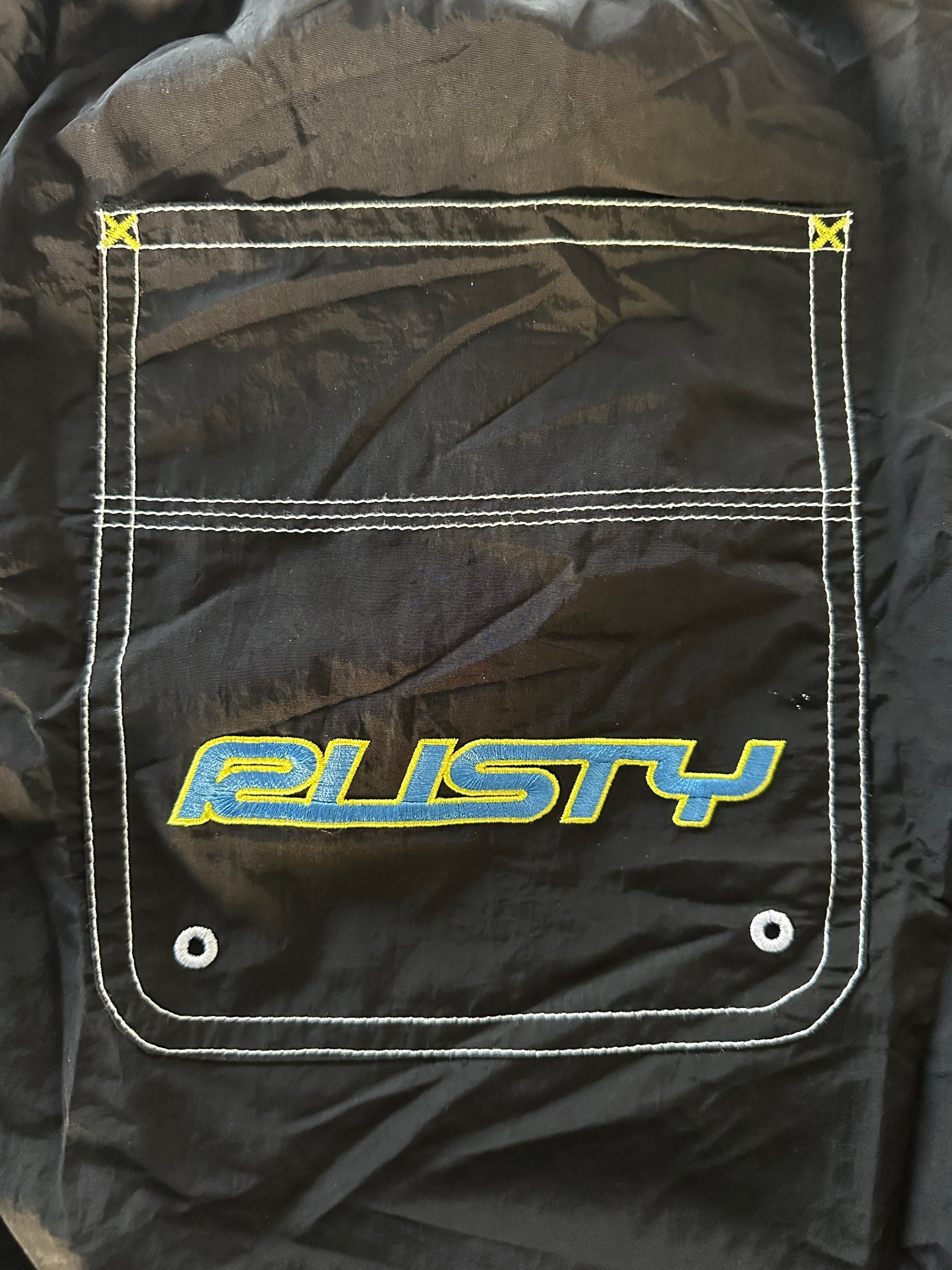 Arte: Logo bordado en bolsillo trasero.