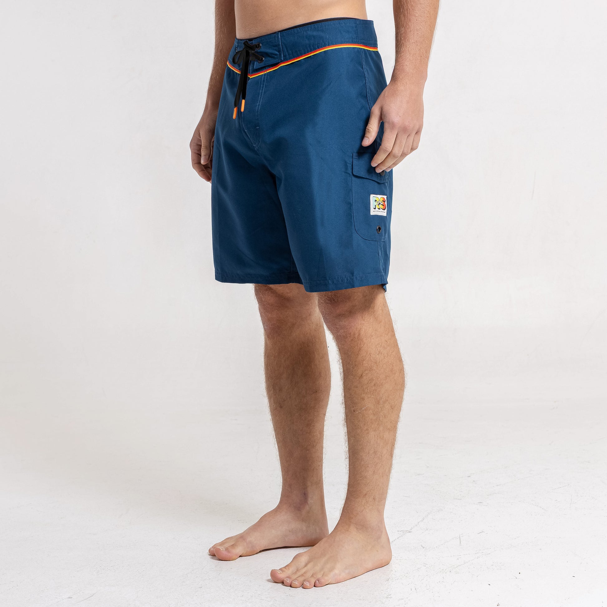 Detalles Cintura fija con galón tejido, cordón chato antideslizante y punteras plásticas personalizadas. Bolsillo lateral y trasero plaqué con tapa y botón. Etiquetas tejidas.