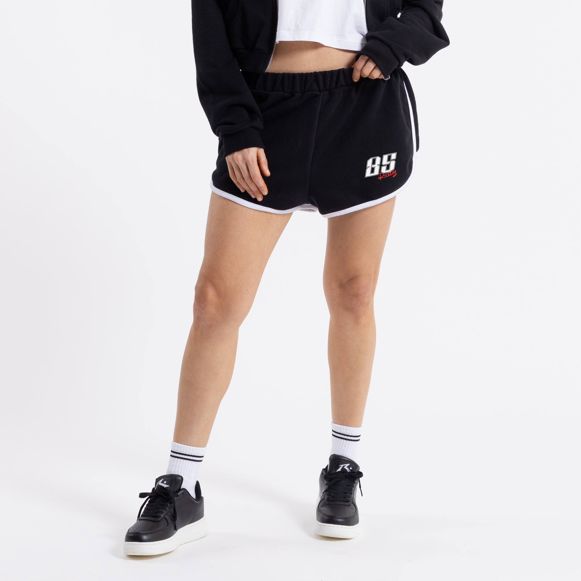 Detalles: Short mini, con cintura elástica ajustable por medio de cordón. Ruedo envivado a contratono. Logo estampado y bordado en el delantero.